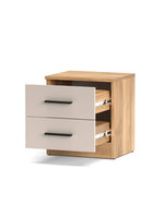 La mesita de noche de 2 cajones es una solución práctica y compacta para mantener el orden en tu dormitorio.